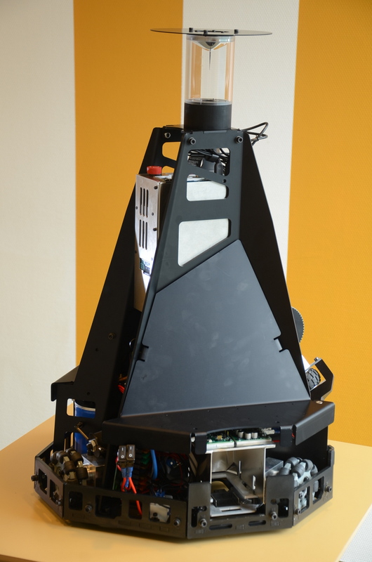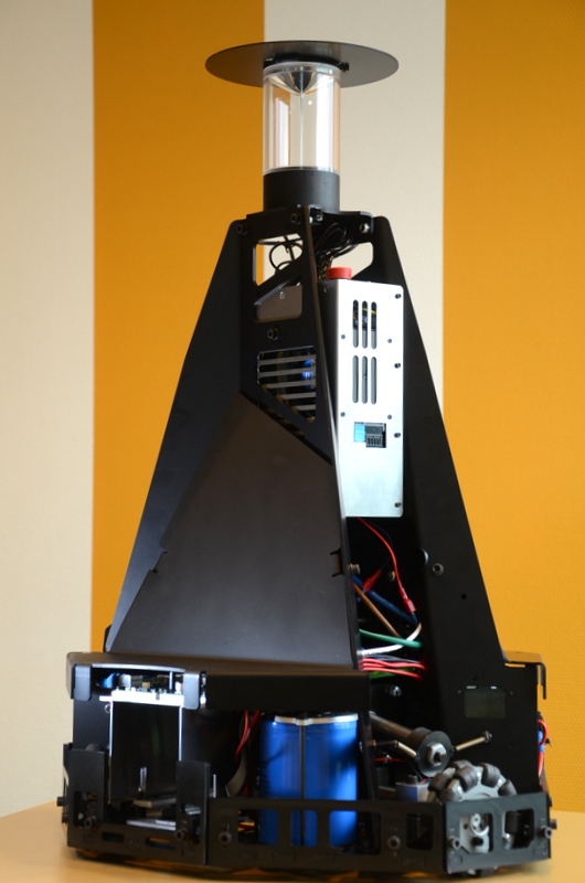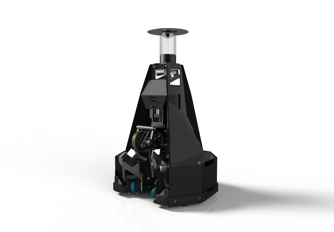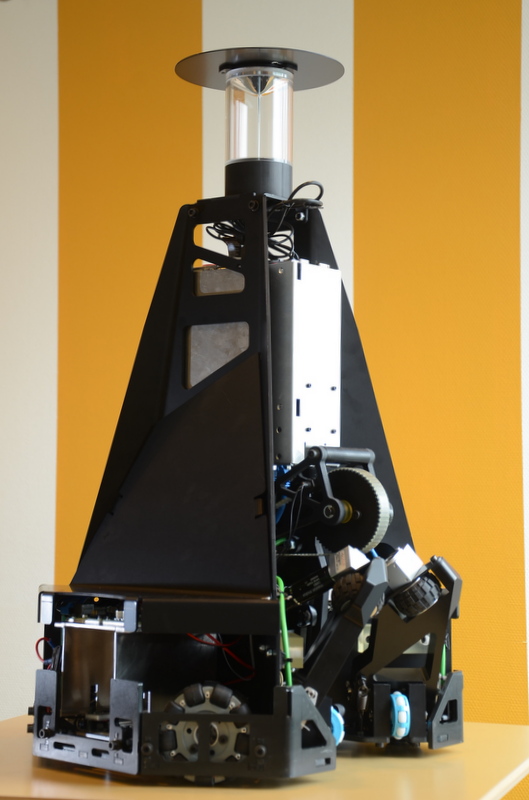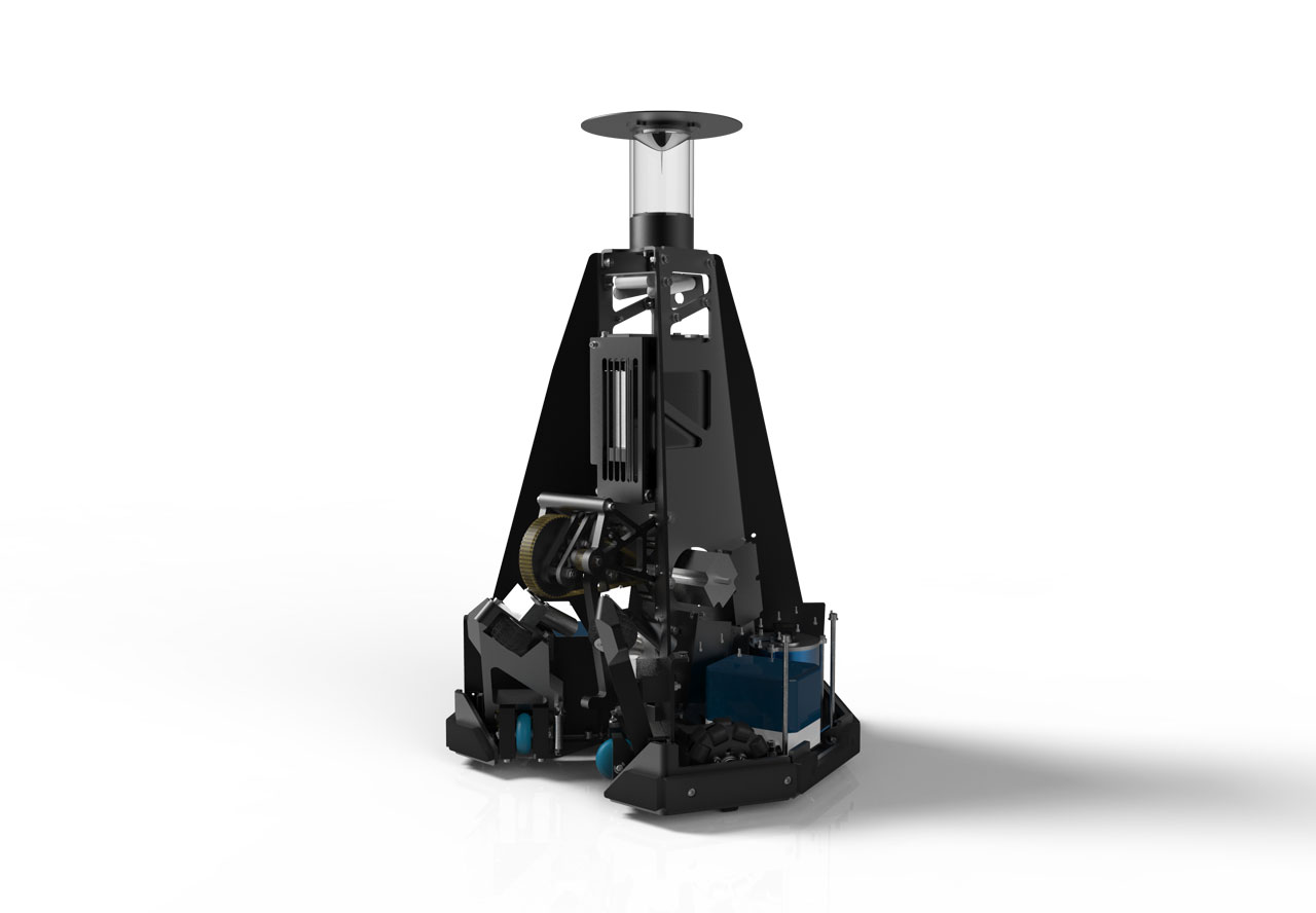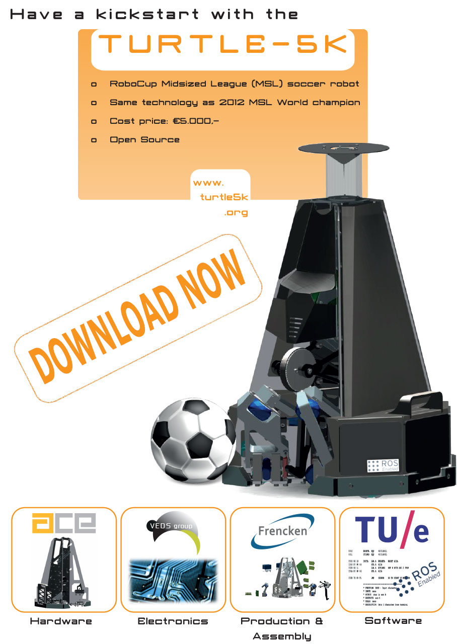 The TURTLE-5k is a remake of the TURTLE robots, the 2012 world champion robot-soccer in the RoboCup Mid-Size League, with a cost price reduction from €25.000,- to €5.000,-.