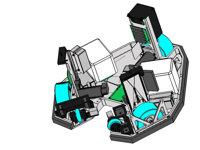 The base acts as the support structure for the TURTLE. It provides a stiff foundation to transfer all forces on the robot to the ground and simultaniously provide space for important hardware like the Beckhoff Ethercat stack, Batteries, High Voltage Supply, Motors, Amplifiers and other electronic devices.
