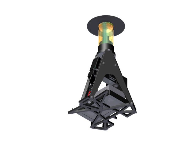 The upper body acts as the support structure for the Vision of the TURTLE. It is build using three plates in a pyramid construction, using horizontal frames to provide bending and torsional stiffness. These horizontal frames also provide assembly options for the Vision tube which gives a 360 degrees field of view and a possibility to assemble a front camera. The front camera is not used in the TURTLEs who won the 2012 World Cup.